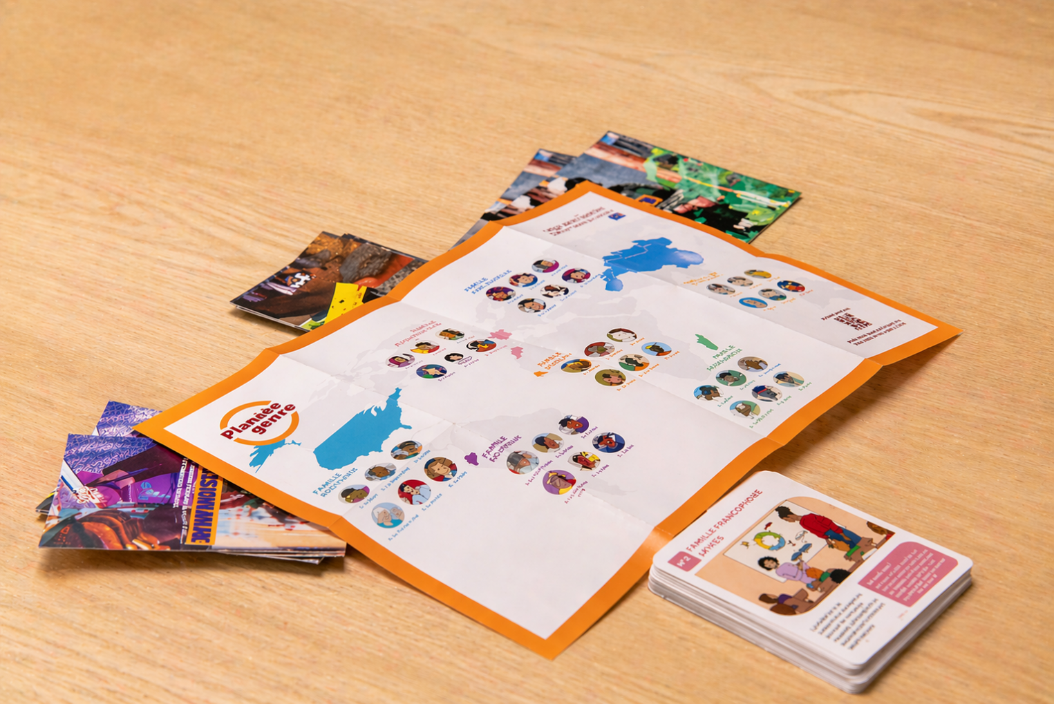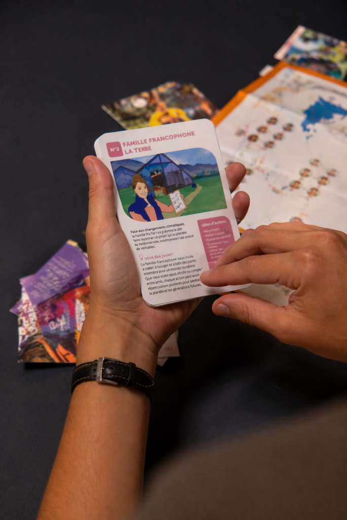 Une famille est composée de 6 membres, identifiés par un numéro sur les cartes à jouer. La carte du monde aide à reconstituer les familles, dans le sens élargi et décolonial du terme.