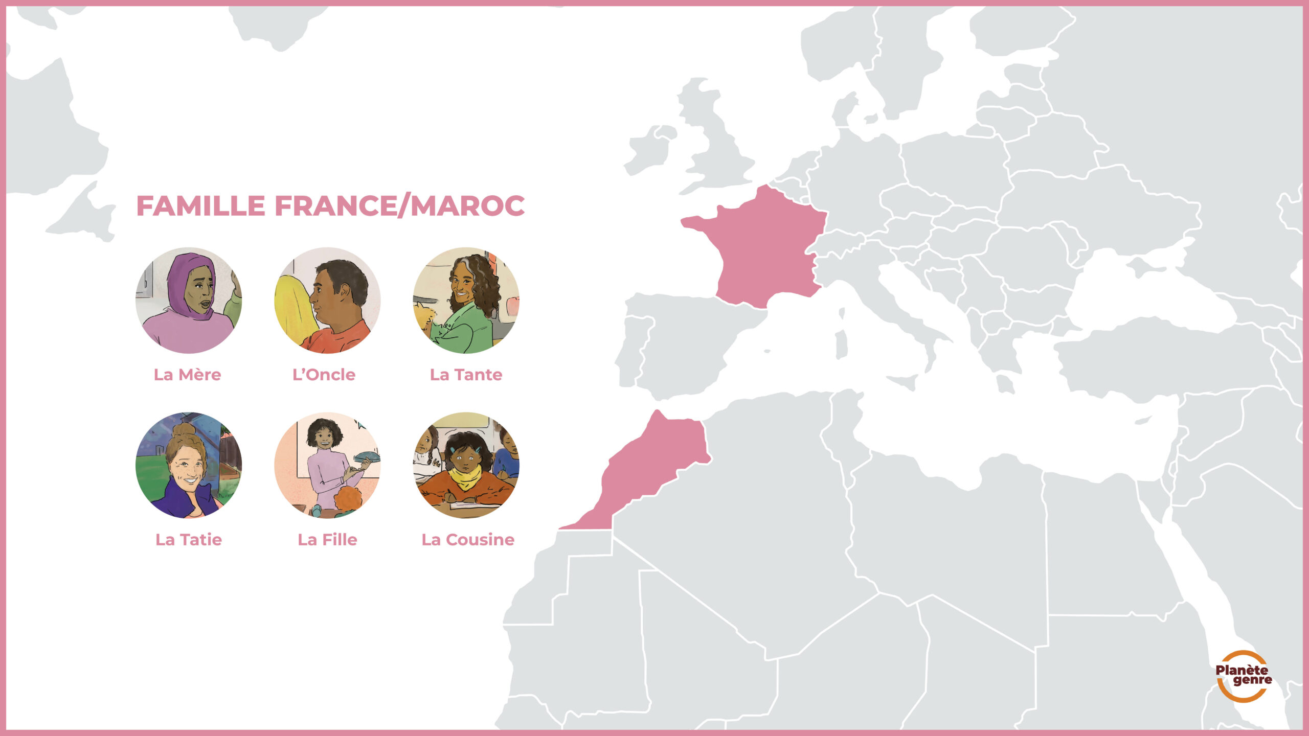Les pays ont été choisis en fonction des zones d’intervention des ONG créatrices du jeu. Deux familles (l’Asie centrale et France-Maroc) sont constituées de plusieurs pays afin de refléter la réalité des flux migratoires qui les composent.