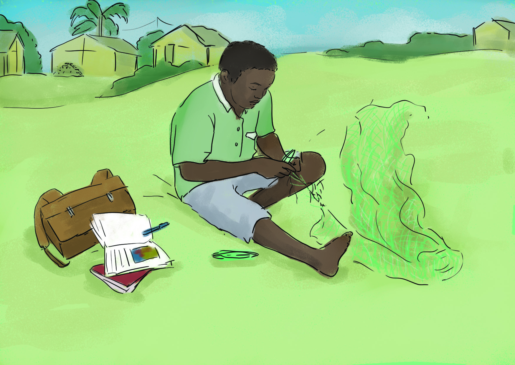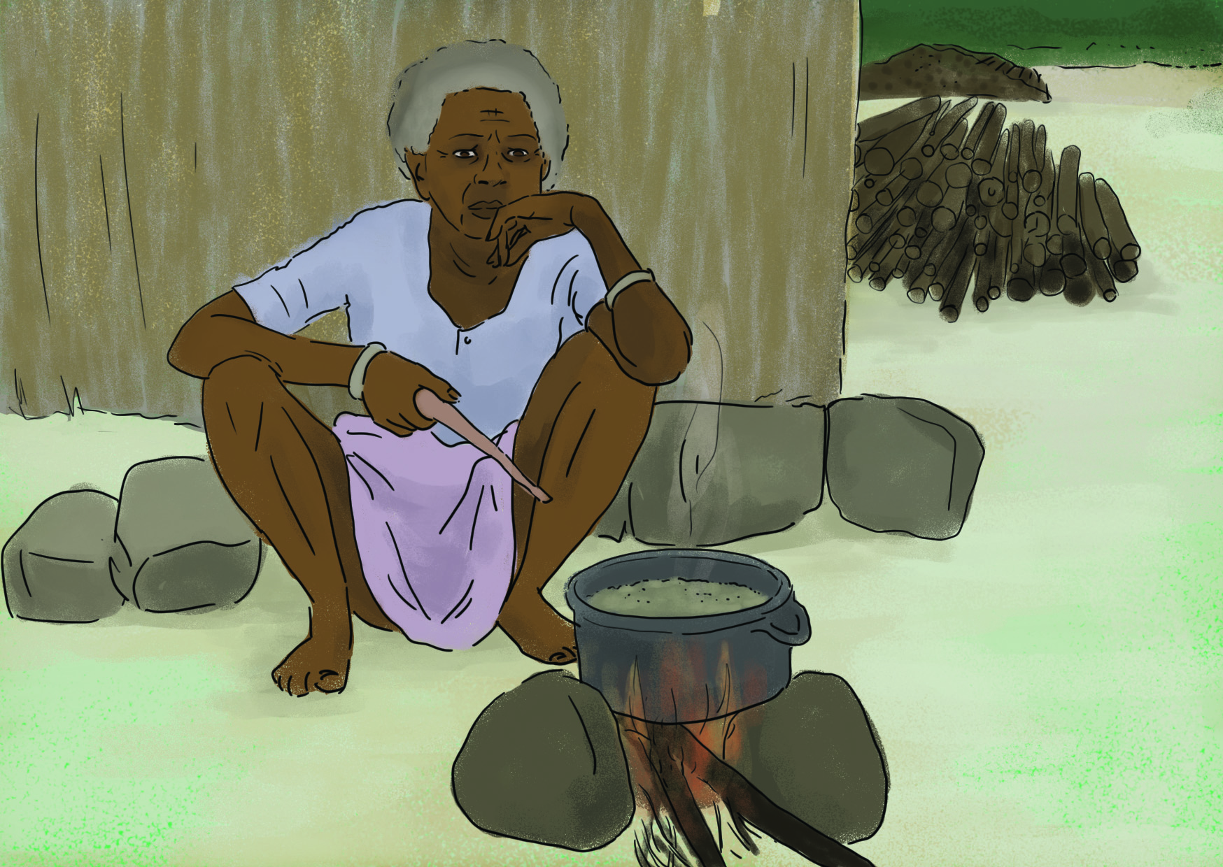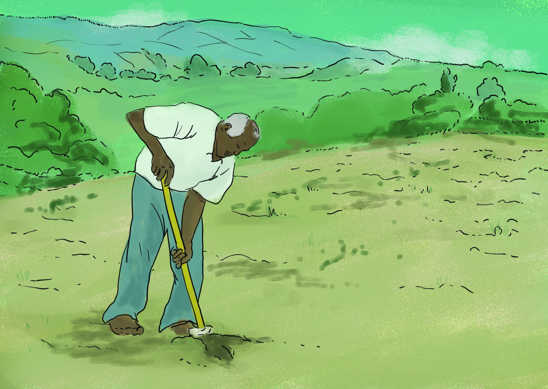 Le Grand-Père cultive de petites parcelles de maïs, manioc, bananes et possède quelques orangers, citronniers et manguiers. L’érosion des sols rend son travail plus difficile et entraîne une baisse de qualité des ressources nutritives de ses récoltes, ce qui a des impacts négatifs sur sa santé, celle de ses proches et de sa clientèle.