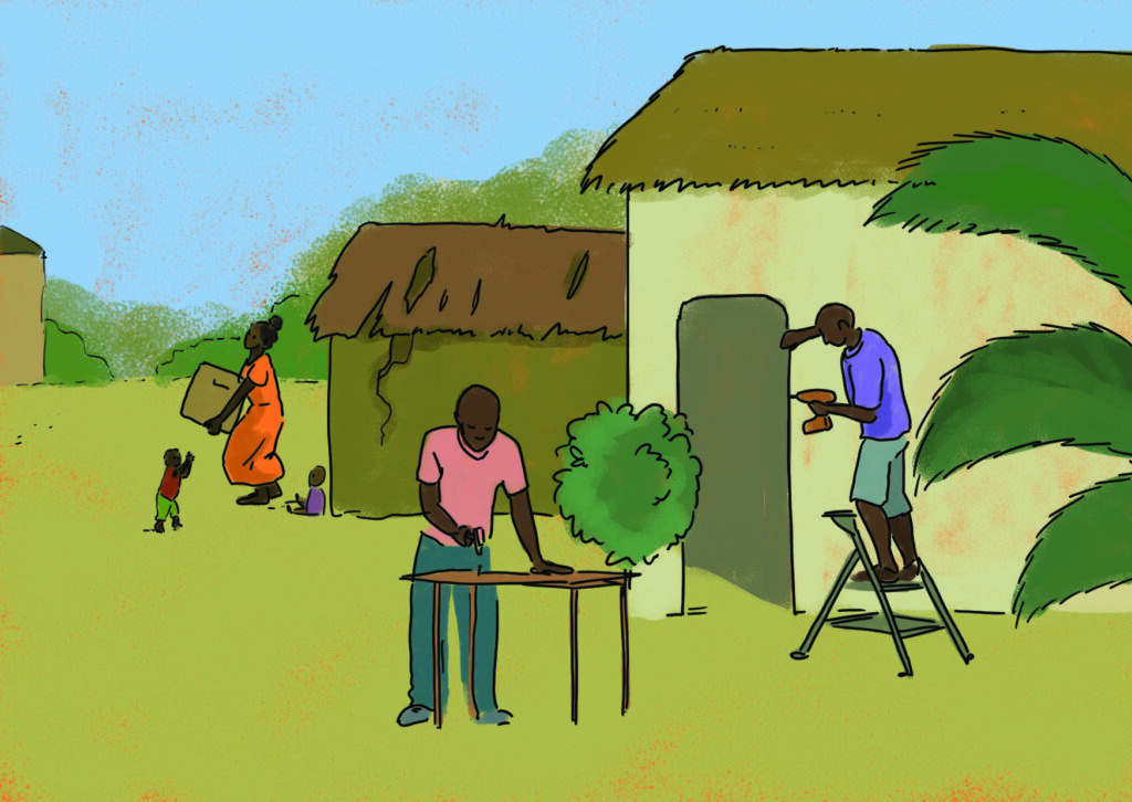 • Construction de toilettes et de points d’eau dans les villages et écoles, afin de garantir aux femmes et aux filles des conditions dignes pour vivre leurs règles.