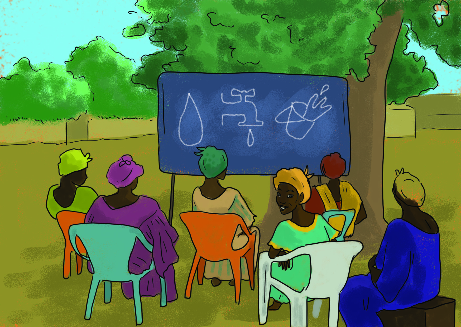 • Sensibilisation des femmes, des filles, mais aussi des hommes, aux menstruations et à l’hygiène menstruelle.